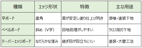 ボードの種類を理解して選定することで、仕上がりの美しさや耐久性を高めることができます。
