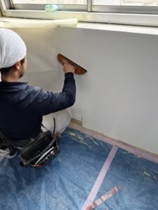 クロス工事において、最も時間がかかり、かつ仕上がりの精度を左右する工程が「下地処理」です。貼り付ける前の準備をどれだけ丁寧に行うかが、完成時の見た目を左右します。